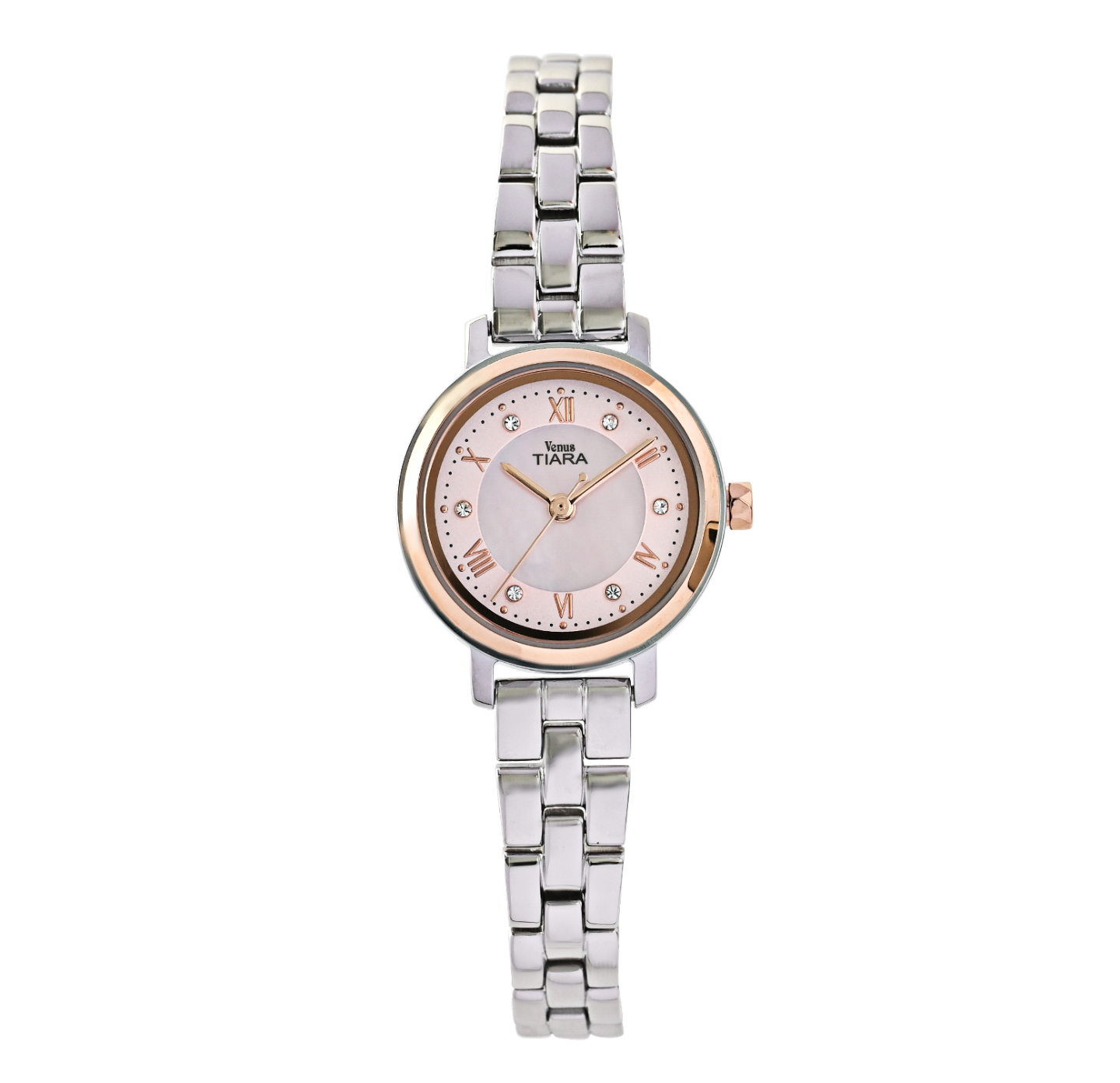 HOME | ALL ITEMS | 25SSmodel | VT098-PK VT098-PK¥35,200 (税込) [仕様] 駆動方式 電池式クォーツ 携帯精度 平均月差±20秒以内 防水機能 日常生活防水(3気圧) 文字盤カラー ピンク(中央マザーオブパール) [外装] ケース素材 ステンレススチール バンド素材 ステンレススチール ガラス素材 ミネラルクリスタル ケースサイズ 24.0mm Color Variation