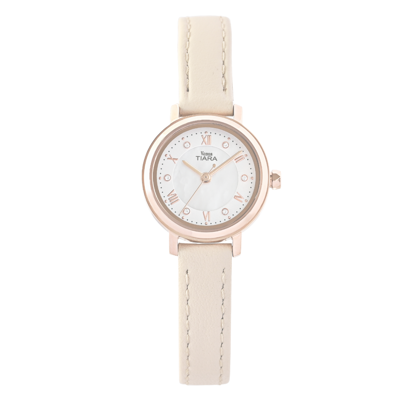 HOME | ALL ITEMS | 25SSmodel | VT098-WH1 VT098-WH1¥35,200 (税込) [仕様] 駆動方式 電池式クォーツ 携帯精度 平均月差±20秒以内 防水機能 日常生活防水(3気圧) 文字盤カラー ホワイト(中央マザーオブパール) [外装] ケース素材 ステンレススチール バンド素材 カーフレザー(ベージュ) ガラス素材 ミネラルクリスタル ケースサイズ 24.0mm Color Variation
