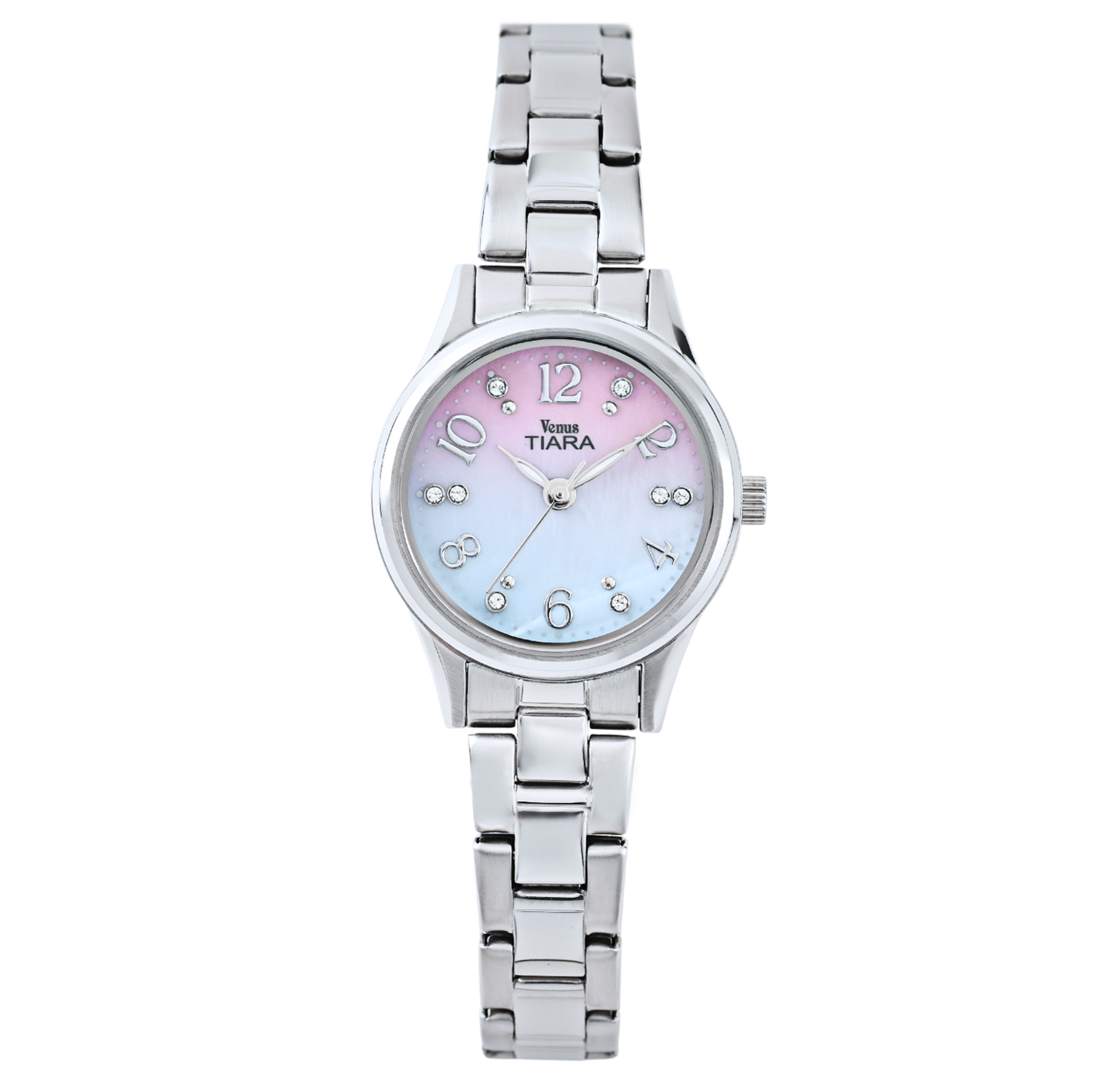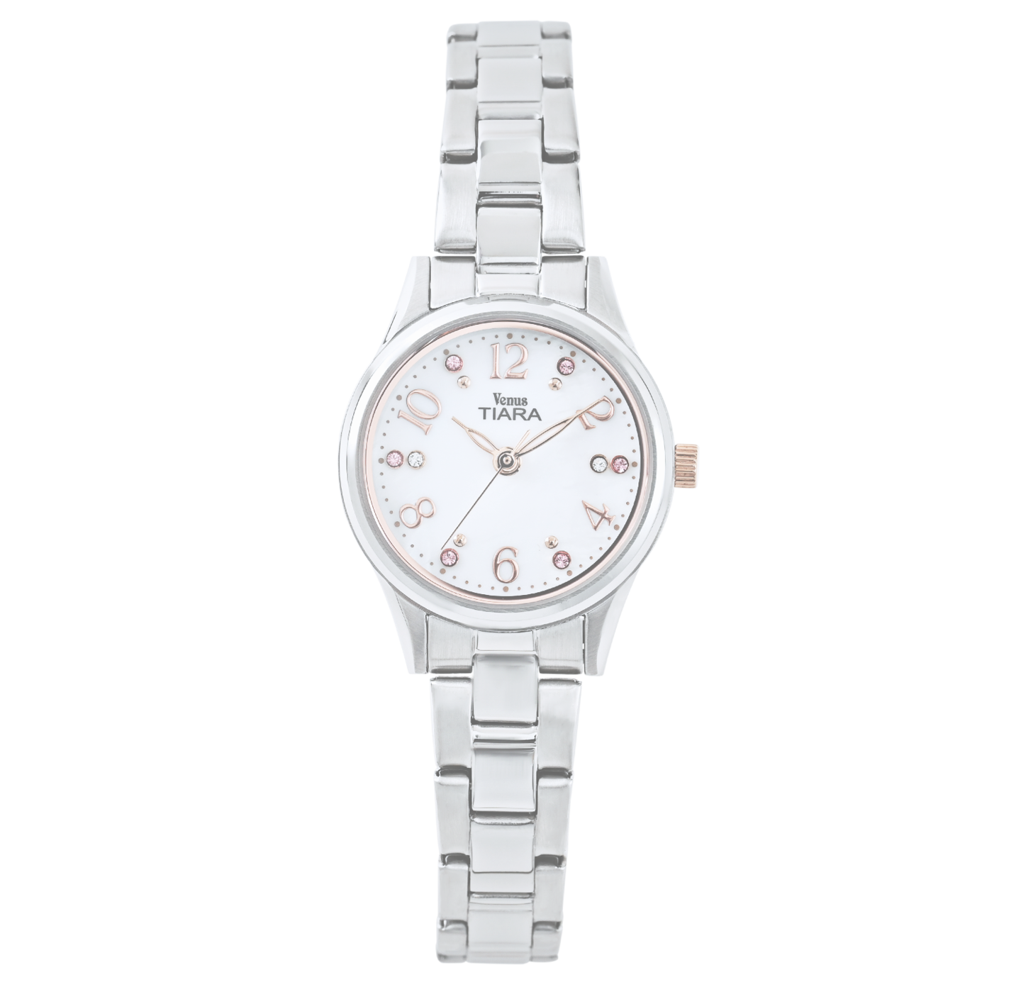 HOME | ALL ITEMS | 26SSmodel | VT102-PK VT102-PK¥35,200 (税込) [仕様] 駆動方式 電池式クォーツ 携帯精度 平均月差±20秒以内 防水機能 日常生活防水(3気圧) 文字盤カラー ピンク(マザーオブパール) [外装] ケース素材 ステンレススチール バンド素材 ステンレススチール ガラス素材 ミネラルクリスタル ケースサイズ 26.0mm x 32.5mm 腕周りサイズ 最長175mm Color Variation